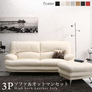 ハイバックソファ レザータイプ ソファ&オットマンセット 3P