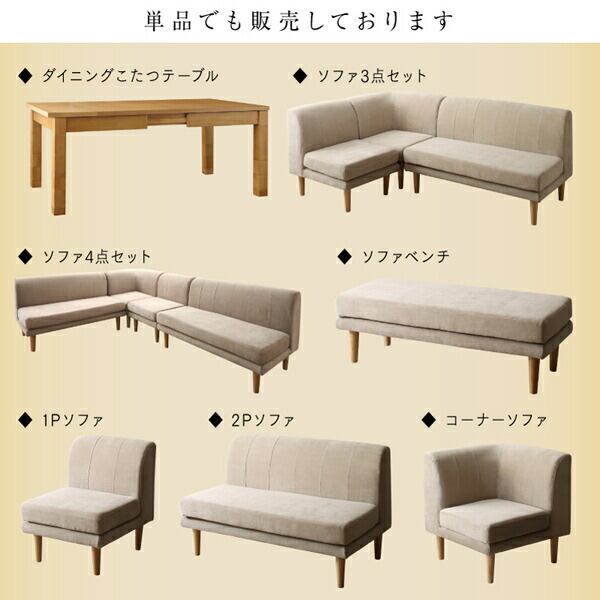 高さ調節可能 3段階伸長式 大型こたつソファダイニング 3点セット(2Pソファ1脚+1Pソファ1脚+コーナーソファ1脚) 1P×2+2P