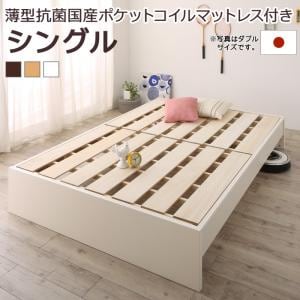 お客様組立 薄型抗菌国産ポケットコイルマットレス付き シングル