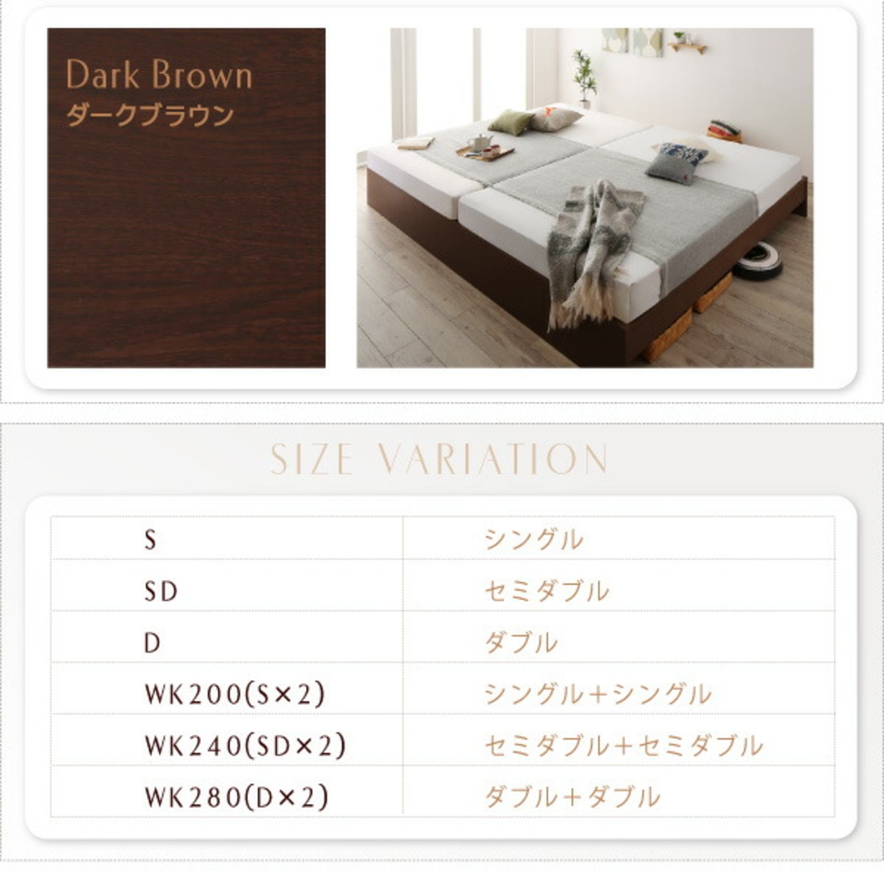 お客様組立 高さ調整可能国産すのこファミリーベッド 薄型抗菌国産ポケットコイルマットレス付き ワイドK200