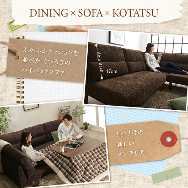 高さ調節可能 ハイバックこたつソファダイニング 5点セット(テーブル+2Pソファ1脚+1Pソファ2脚+コーナーソファ1脚) W105