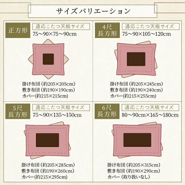 こたつ布団カバー単品 5尺長方形(90×150cm)天板対応