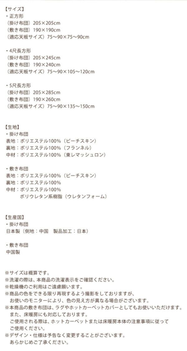 こたつ布団 掛布団&敷布団2点セット 5尺長方形(90×150cm)天板対応