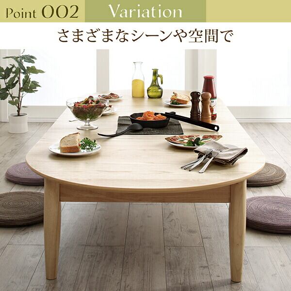 3段階伸長式 天然木オーバル型エクステンションリビングテーブル W160-210