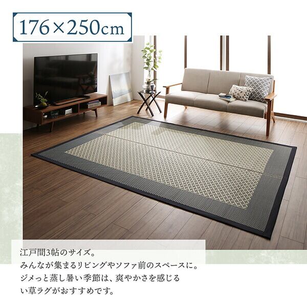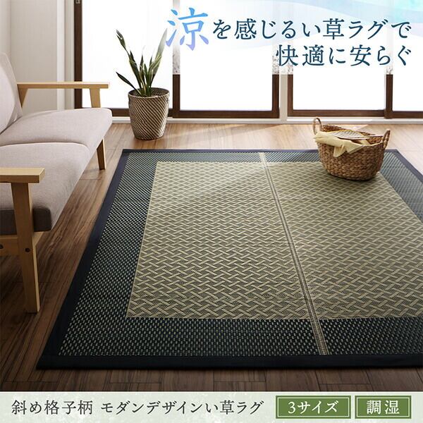 自然素材ラグ 斜め格子柄 モダンデザインい草ラグ 176×176cm