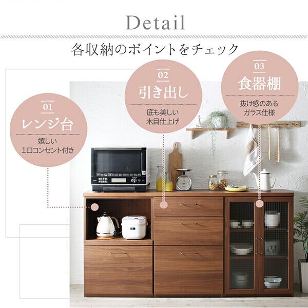 日本製完成品 幅180cmの木目調ワイドキッチンカウンター 2点セット 引き出し+レンジ台