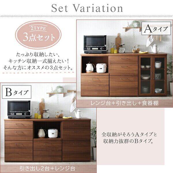 日本製完成品 幅180cmの木目調ワイドキッチンカウンター 3点セット レンジ台+引き出し+食器棚