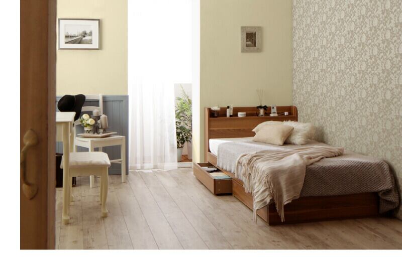 ショート丈収納ベッド 薄型プレミアムポケットコイルマットレスマットレス付き セミシングル ショート丈