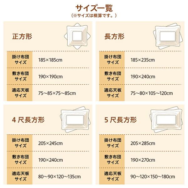 こたつ用掛け布団単品 4尺長方形(80×120cm)天板対応