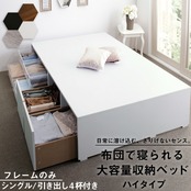 ベッドフレームのみ ハイタイプ 引き出し4杯 シングル