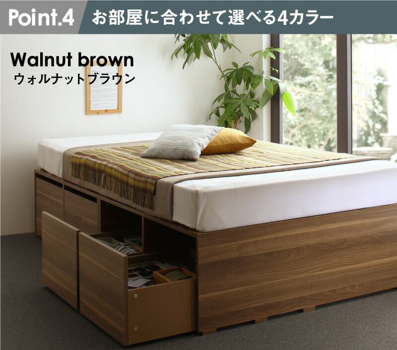薄型プレミアムポケットコイルマットレス付き ハイタイプ 引き出し4杯 セミダブル