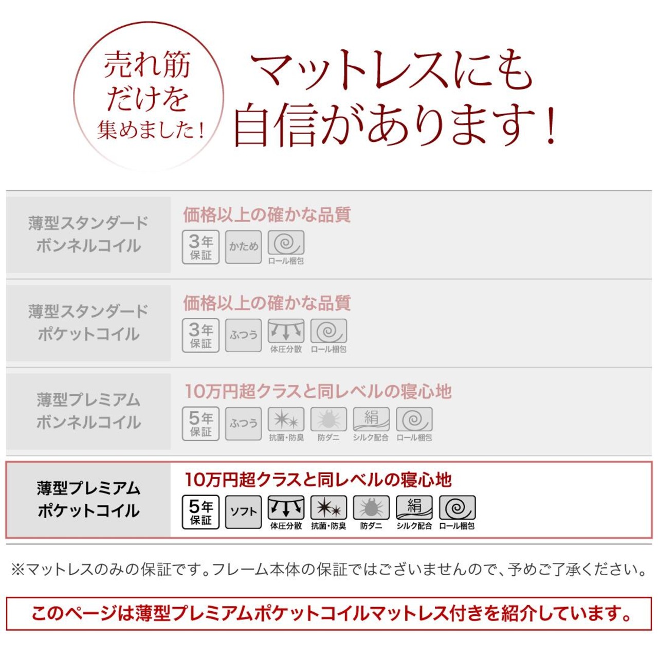 薄型プレミアムポケットコイルマットレス付き ロータイプ 引き出し2杯 シングル