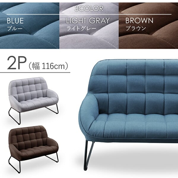 ファブリック×スチール脚のデザインソファ 2P 幅116cm 脚25cm