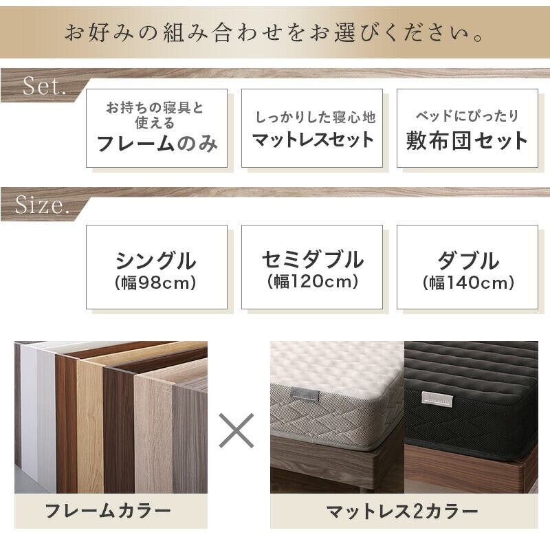 ベッド すのこベッド すのこ シングルベッド シングル マットレス付き 無垢すのこ 天然木すのこ 収納 木製ベット 頑丈 通気性 北欧 マットレスセット シングル