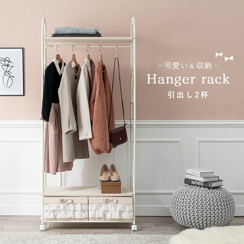 エレガントハンガーラック-KHR/フリル付き引き出し2杯タイプ 75×35.5×172cm