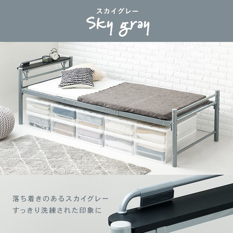 スチール製ロングベッド フレームのみ 宮棚付きタイプ シングル