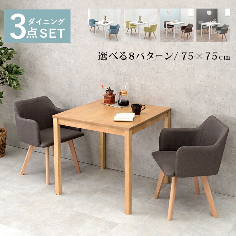 ダイニング3点セット チェア(×2)-肘付き 75×75×72cm