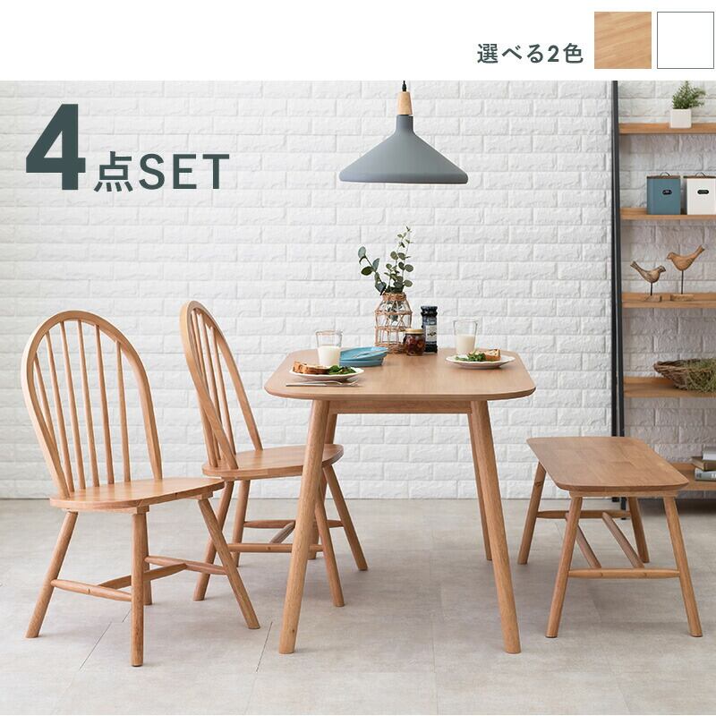 ダイニングセット ウィンザーチェア+ベンチタイプ 4点セット 120×75×70cm