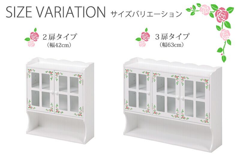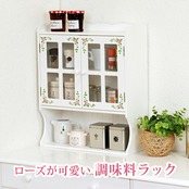 調味料ラック 2扉-ローズペイント 42×16×50cm