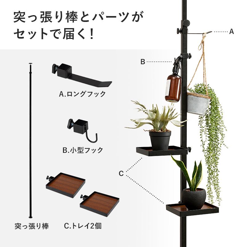 突っ張り棒&パーツ_5点セット 角型タイプ 43×43×187cm
