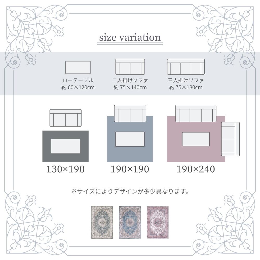 アンティーク絨毯風プリントラグ カメオ 190×240cm