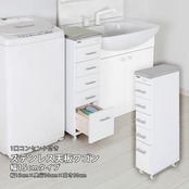 ステンレス天板ワゴン すき間収納 隙間収納 洗面所 ランドリー キッチン デンタルワゴン キャスター 日本製 完成品 ホワイト 白 幅15 奥行30