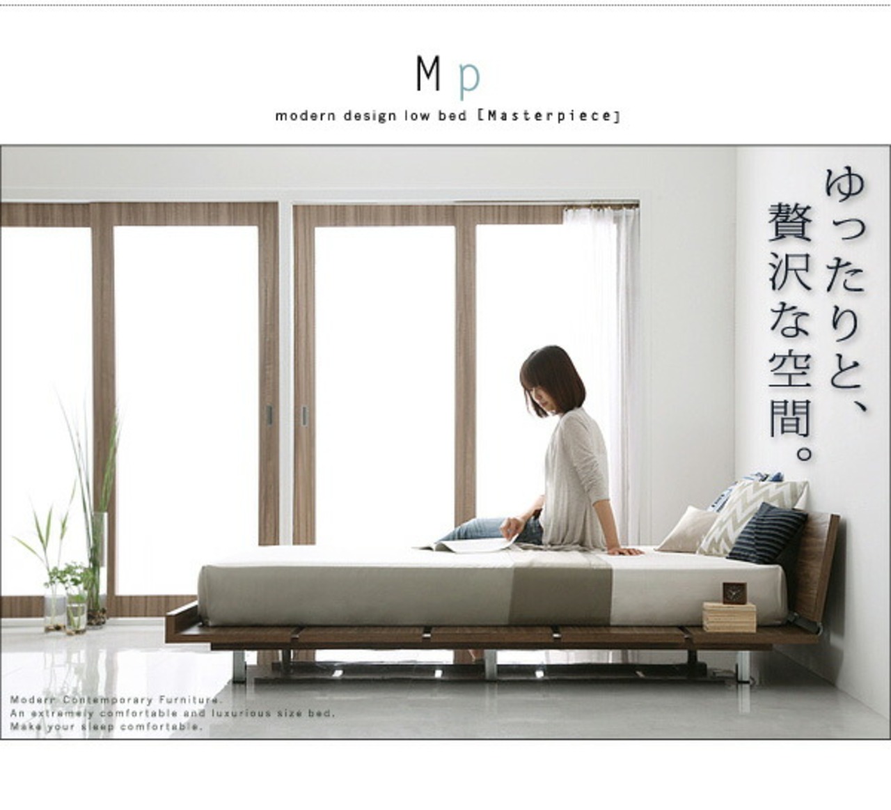 組立設置付き モダンデザインローベッド プレミアムボンネルコイルマットレス付き ナローステージ クイーン(Q×1) フレーム幅180