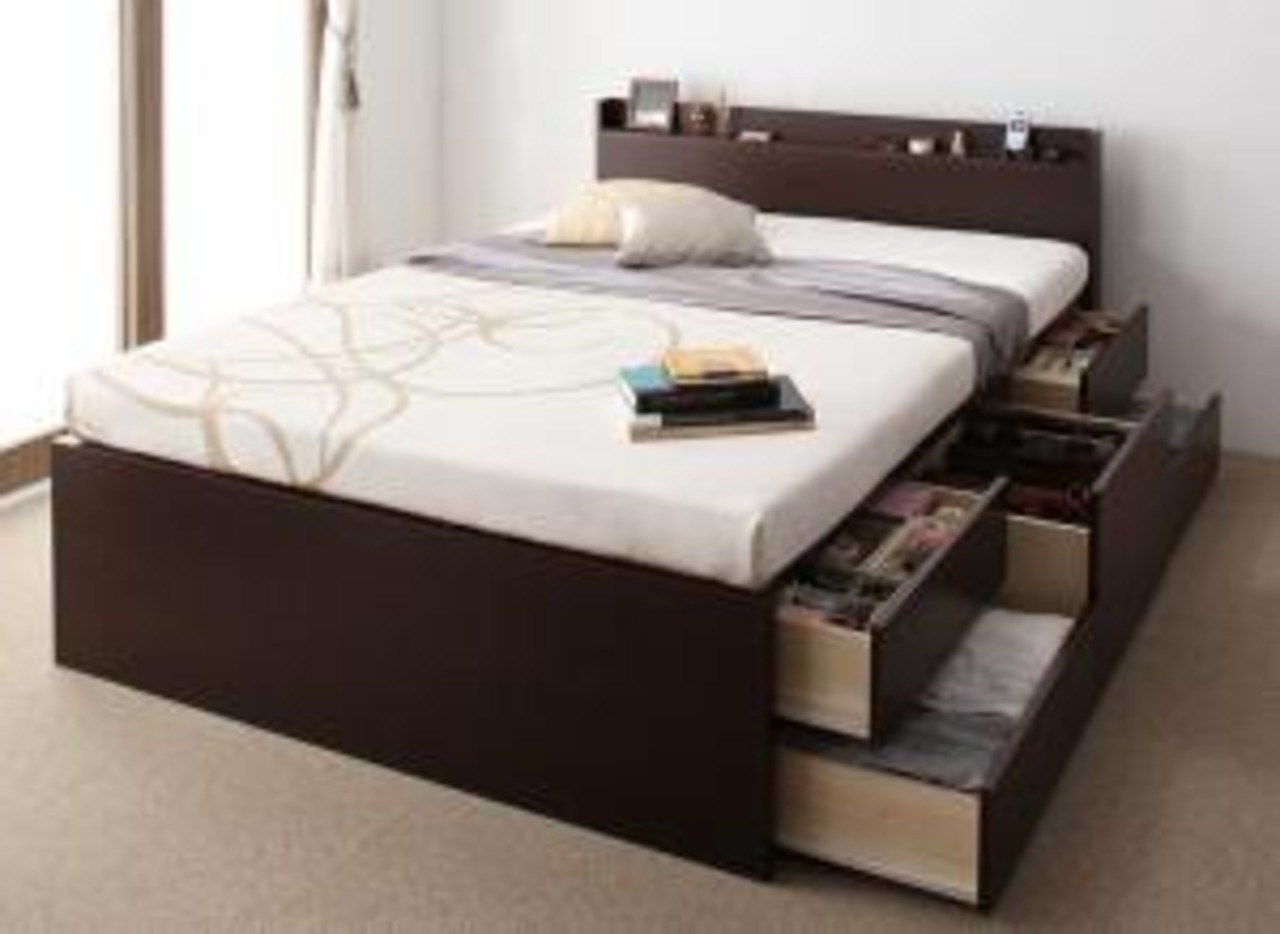 組立設置付 棚・コンセント付きチェストベッドィ 薄型抗菌国産ポケットコイルマットレス付き シングル