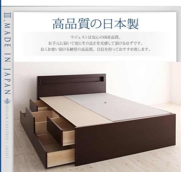 組立設置付 棚・コンセント付きチェストベッド 薄型抗菌国産ポケットコイルマットレス付き シングル