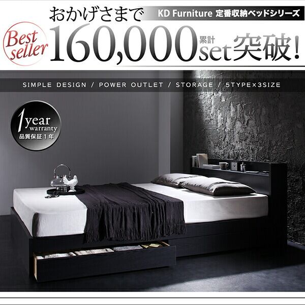 組立設置付き 棚・コンセント付き収納ベッド ベッドフレームのみ ダブル