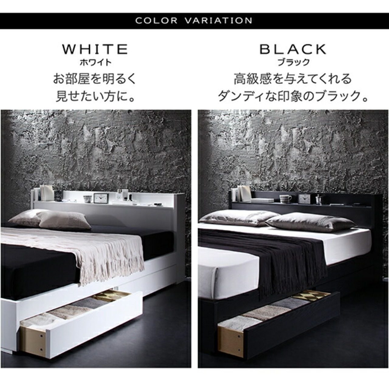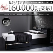 組立設置付き 棚・コンセント付き収納ベッド 国産カバーポケットコイルマットレス付き セミダブル