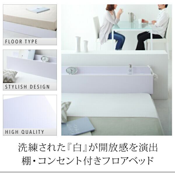 組立設置付き 棚・コンセント付きフロアベッド スタンダードポケットコイルマットレス付き セミダブル