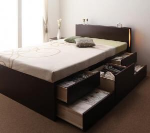 組立設置付 モダンライト・コンセント付きチェストベッド 薄型プレミアムポケットコイルマットレス付き シングル