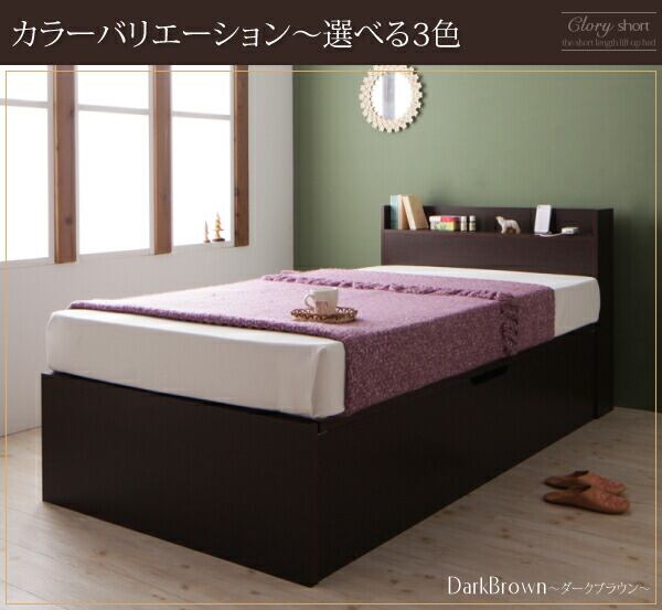 組立設置付 国産跳上げ収納ベッド 薄型スタンダードボンネルコイルマットレス付き 横開き シングル ショート丈 深さラージ