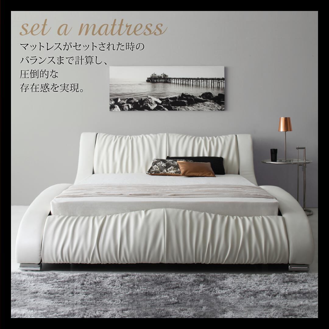 組立設置付き モダンデザイン・高級レザー・デザイナーズベッド プレミアムポケットコイルマットレス付き ダブル
