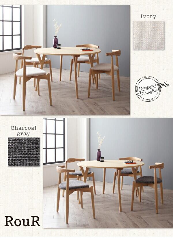 組立設置付き デザイナーズ北欧ラウンドテーブルダイニング 5点セット(テーブル+チェア4脚) ミックス 直径120