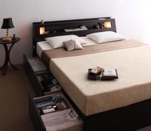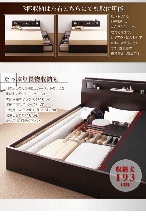 組立設置付き モダンデザイン・大型サイズ収納ベッド プレミアムポケットコイルマットレス付き クイーン(Q×1)