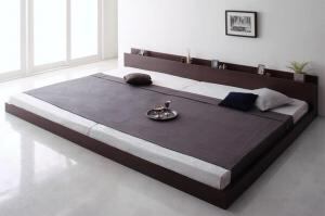 組立設置付き スーパーワイドキングサイズ 大型モダンフロアベッド プレミアムボンネルコイルマットレス付き ワイドK220