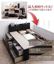組立設置付 棚・コンセント付き_大容量チェストベッド 薄型プレミアムポケットコイルマットレス付き ダブル