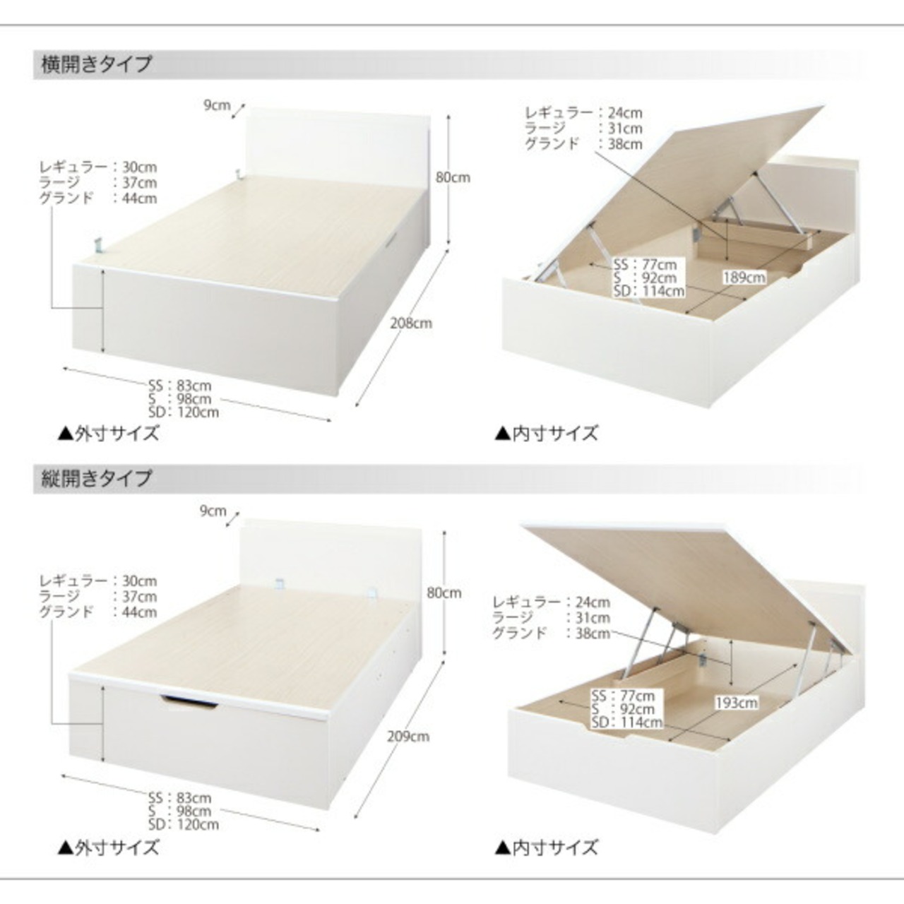 組立設置付 国産跳ね上げ収納ベッド ホワイト 薄型プレミアムボンネルコイルマットレス付き 縦開き シングル 深さラージ