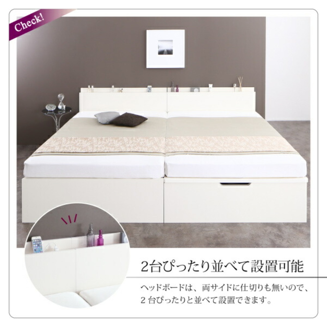 組立設置付 国産跳ね上げ収納ベッド ホワイト 薄型プレミアムボンネルコイルマットレス付き 縦開き シングル 深さグランド