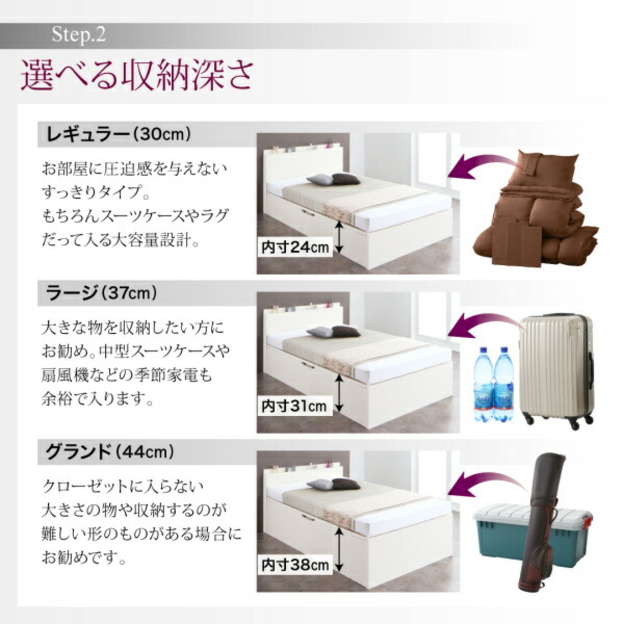 組立設置付 国産跳ね上げ収納ベッド ホワイト 薄型プレミアムポケットコイルマットレス付き 横開き セミシングル 深さレギュラー