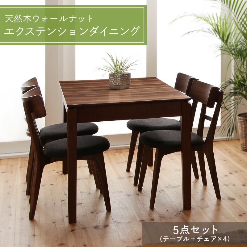 組立設置付き 天然木ウォールナットエクステンションダイニング 5点セット(テーブル+チェア4脚) W120-180