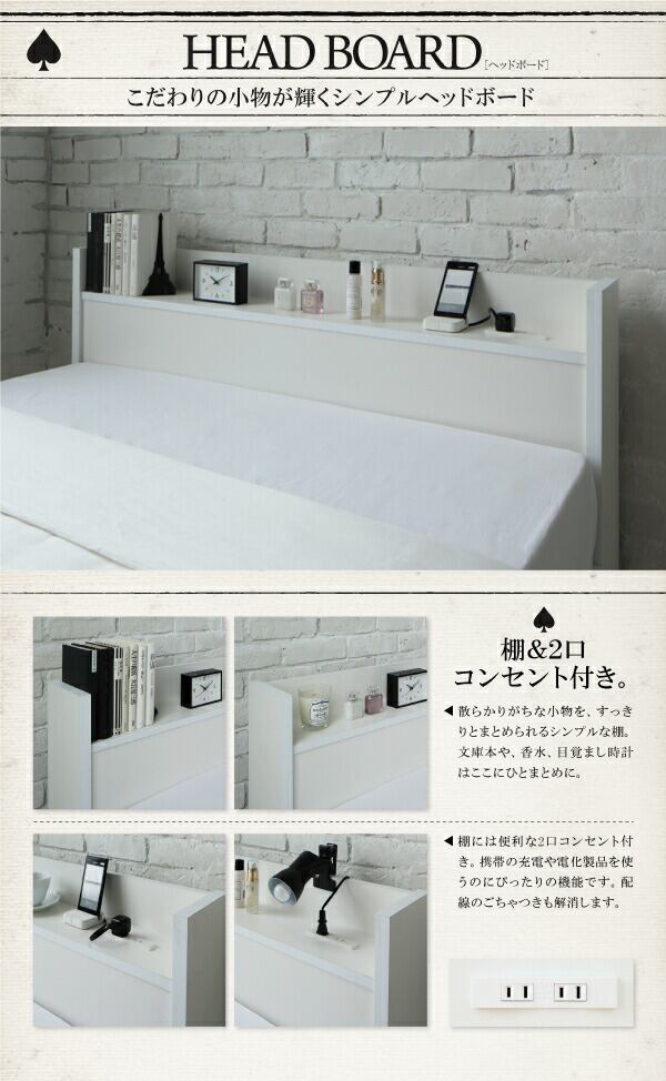 組立設置付き 棚・コンセント付き収納すのこベッド プレミアムポケットコイルマットレス付き セミダブル