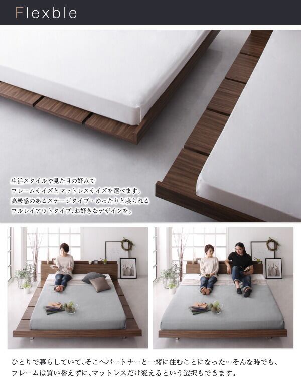 組立設置付き モダンデザインローベッド プレミアムボンネルコイルマットレス付き フルレイアウト キング(K×1) フレーム幅180