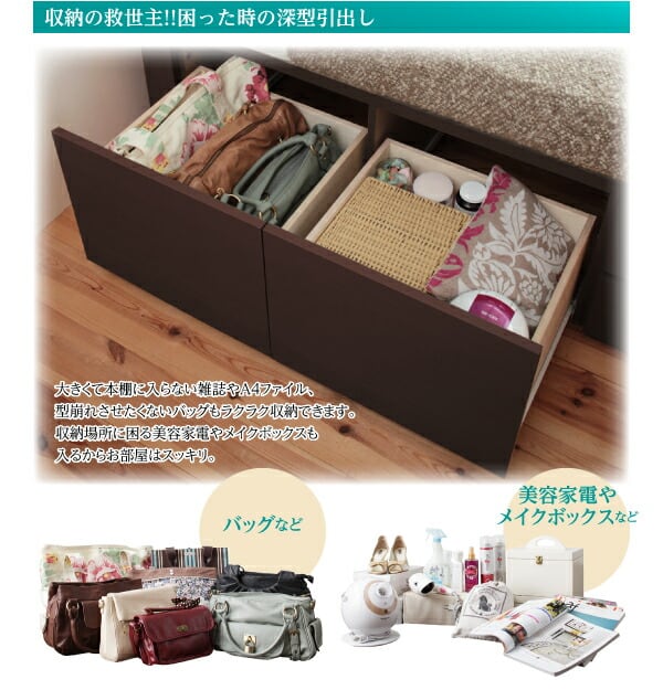 組立設置付 日本製_棚・コンセント付き_大容量チェストベッド 薄型プレミアムポケットコイルマットレス付き セミシングル