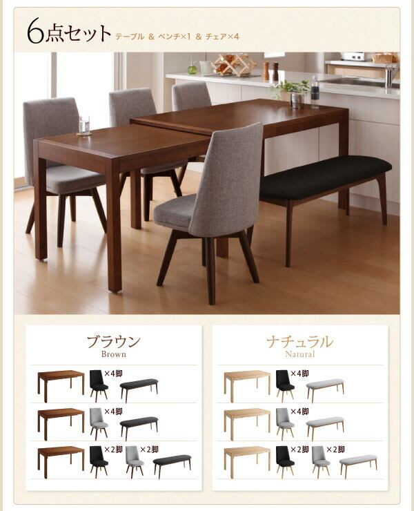ダイニング7点セット(テーブル+チェア6脚) W135-235 組立設置付