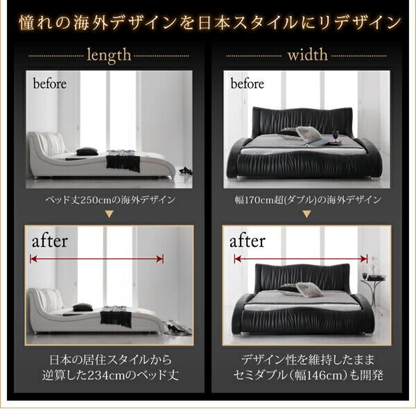 組立設置付き モダンデザイン・高級レザー・デザイナーズベッド プレミアムボンネルコイルマットレス付き ダブル