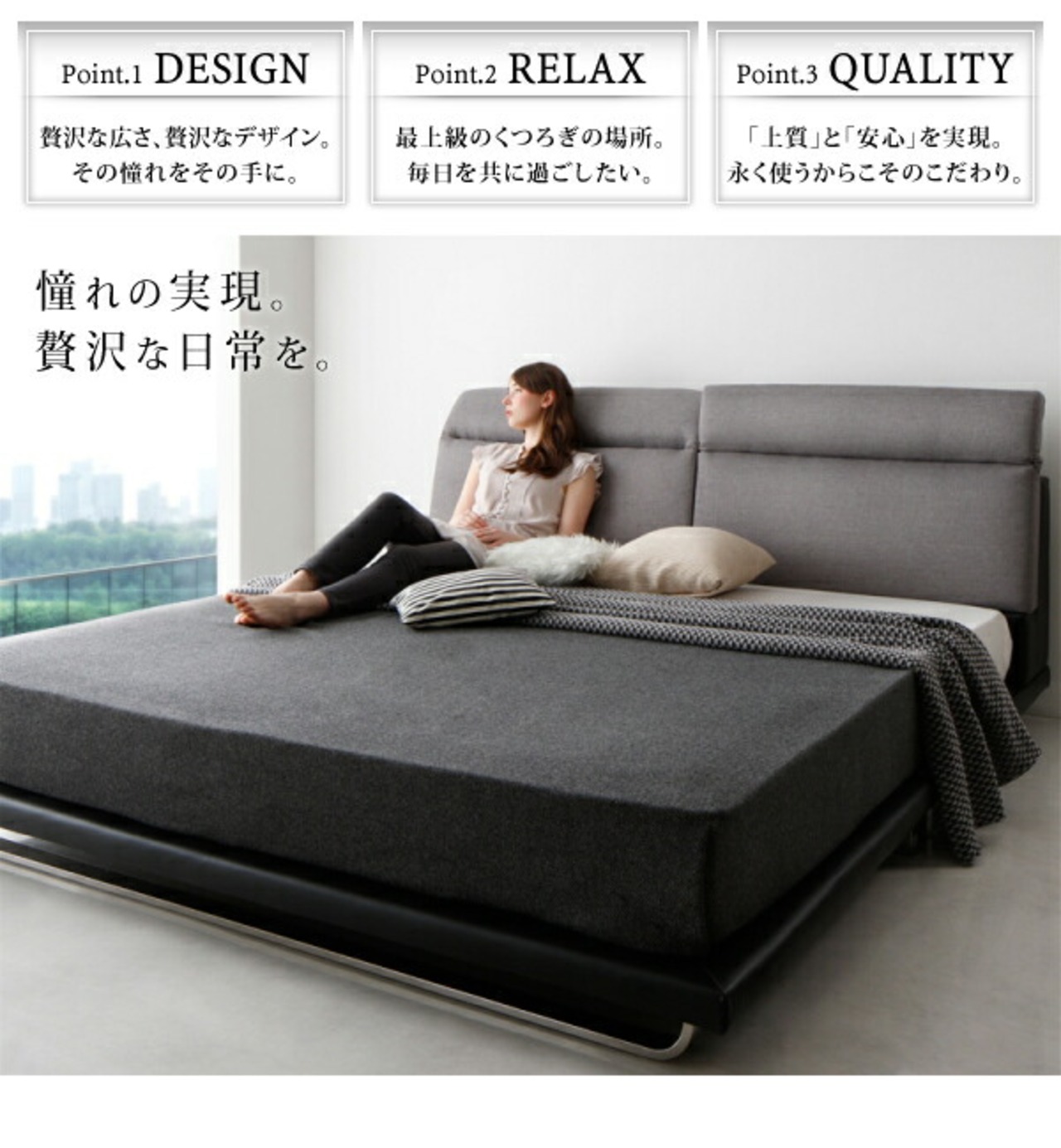 組立設置付き リクライニング機能付き・モダンデザインローベッド ベッドフレームのみ クイーン(Q×1)