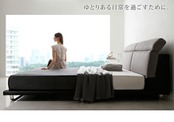 組立設置付き リクライニング機能付き・モダンデザインローベッド 国産カバーポケットコイルマットレス付き ダブル
